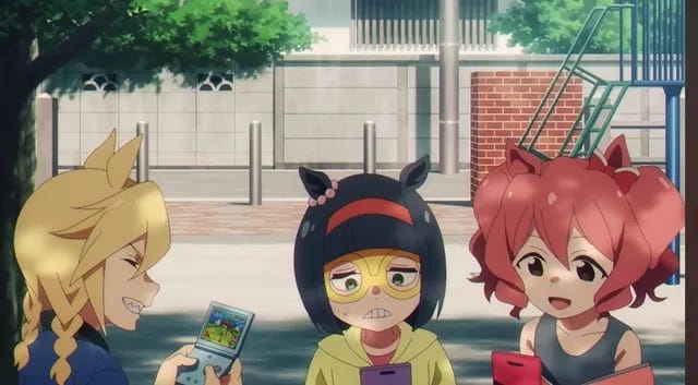 There are also retroactive references; these, of course, can only happen in newer content. An example of this could be the GameBoy Advance SP, appearing in a flashback in Uma Musume: Cinderella Gray.
