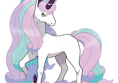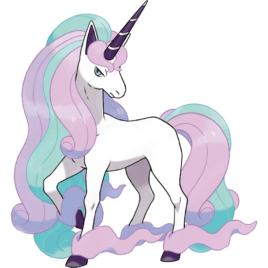 The Galar region introduced new Pokémon variants, including Galarian Ponyta, a Psychic type, and Galarian Rapidash, a Psychic/ Fairy type. These Galarian variants have a more plushie My Little Pony-esque look.